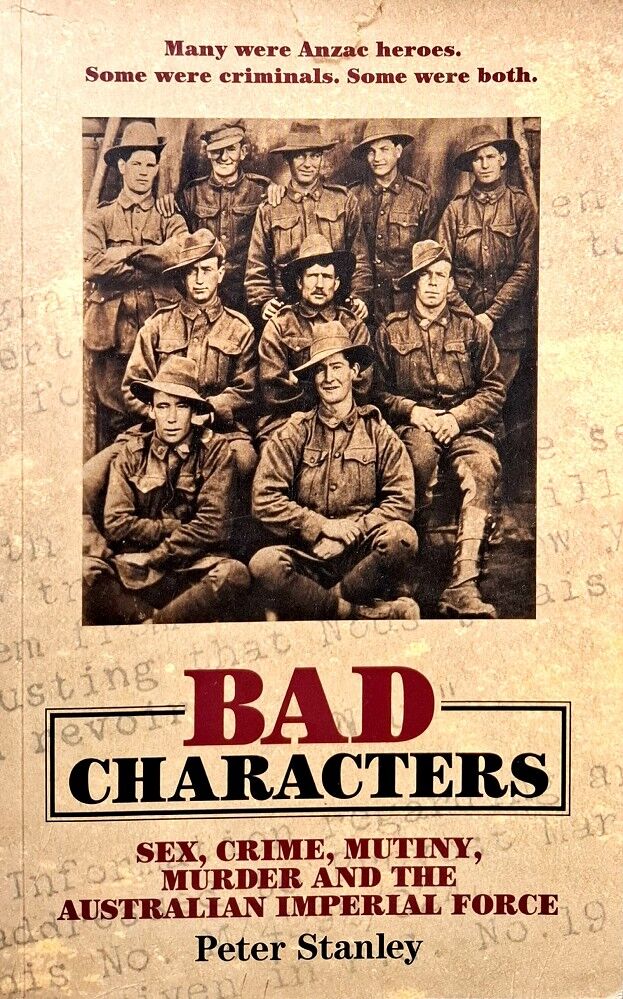 Publishers Description: "Australians have celebrated the Anzacs for nearly a century-but what do we really know of what war did to them Charles Bean, historian of the citizen soldiers of the Australian Imperial Force, wrote that its history spanned the good and the bad-but so far Australians have only looked at the good. Leading war historian Peter Stanley reveals the citizen soldiers the army regarded as its bad characters. These were men who went absent and deserted, caught or concealed VD, got drunk and fought their comrades, who stole, malingered, behaved insolently toward officers or committed more serious offences, including rape and murder. This frank history - the first book on the AIFs indiscipline - shows that it became one of the wars most effective fighting forces in spite of its record for military misbehaviour. Stanley exposes, with a wealth of examples drawn from court-martial files and soldiers letters, how the war turned some men into criminals, but also how bad characters made the AIF the superb force it was."